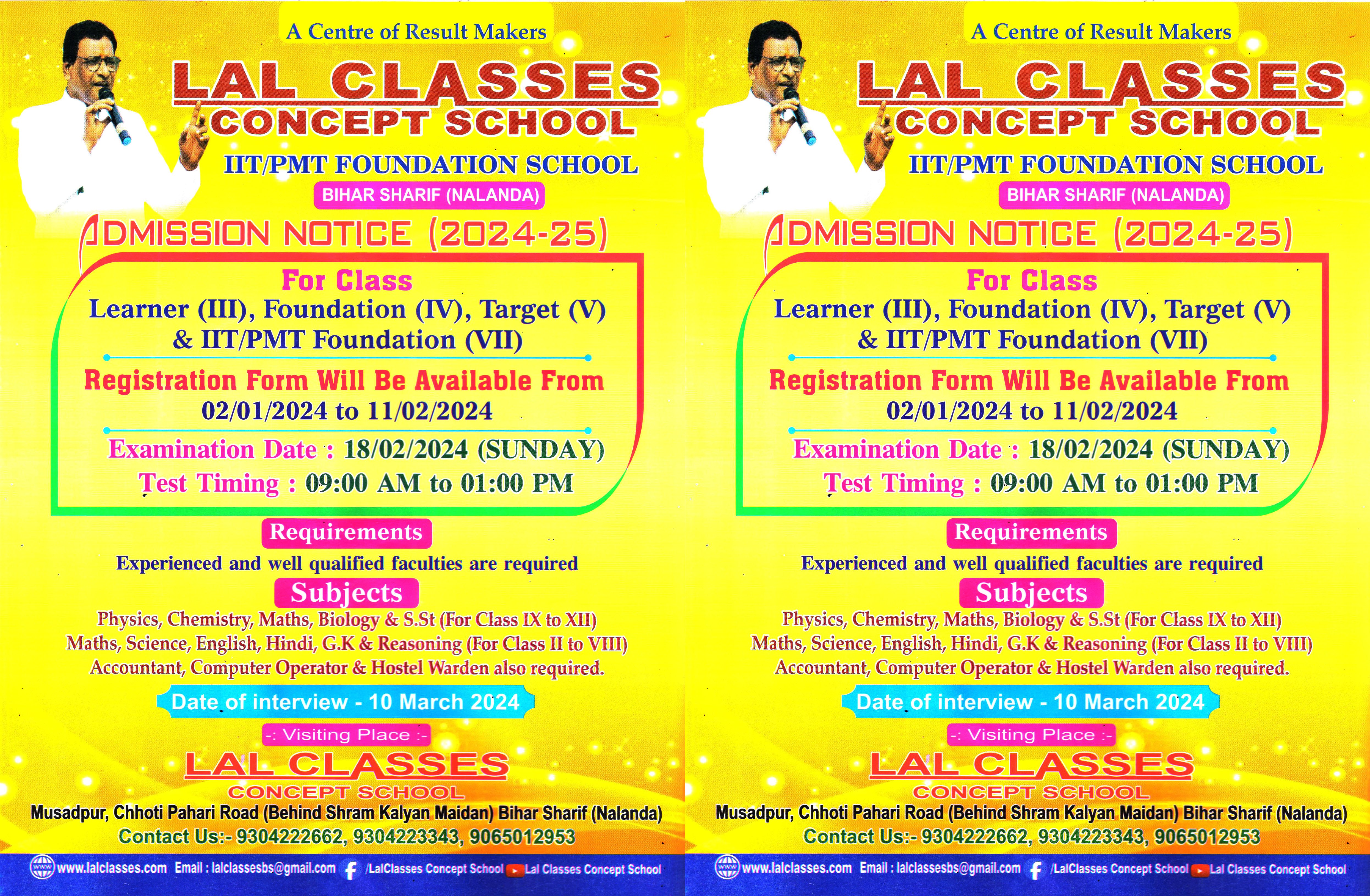 Lal Classes Concept School is committed to provide high quality resources to enable a student to achieve a better and more fulfilled level of value base education.